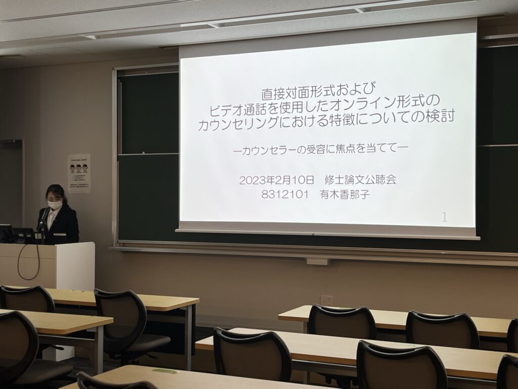 実習に研究に、心理学漬けの2年間を過ごした人間科学研究科の2年生。最終試験として、その集大成を発表する修士論文公聴会が開催されました。本日はその様子を、今年度の学年担任兼学長室ブログメンバーの大杉がお伝えします。