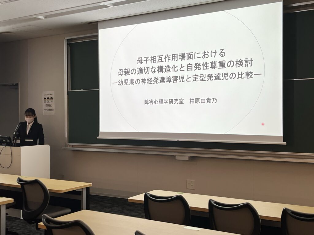 - 柏原由貴乃さん(障害心理学研究室)「母子相互作用場面における母親の適切な構造化と自発性尊重の検討――幼児期の神経発達障害児と定型発達児の比較――」