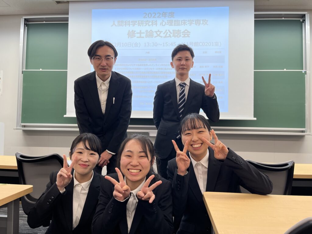 - 有木香那子さん(臨床心理学研究室)「直接対面形式およびビデオ通話を使用したオンライン形式のカウンセリングにおける特徴についての検討――カウンセラーの受容に焦点を当てて―― 」