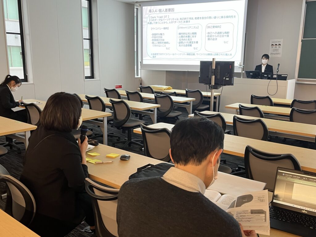 病理的自己愛というのは、病的なほどに自己に対する承認と賞賛を求めてしまう傾向のことを言いますが、それを適切に評価する尺度について改めて検討しようというテーマの研究でした。既存の尺度を今一度検討し直し、抑うつとの関連も視野に入れながら、丁寧に追試したものです。心理的な問題は実に複雑に絡み合うものですが、それらを適切に評価してこそサポートが可能となります。現場にどう還元するかも、様々な考察がなされていました。