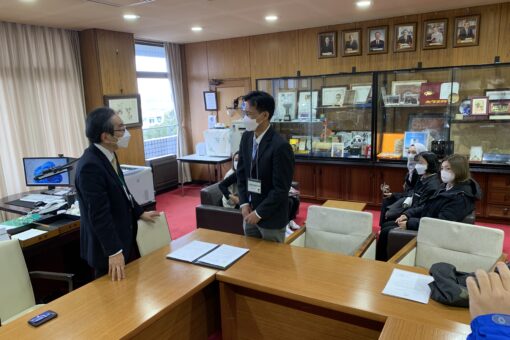 今回の協定署名式は、2月14日(火)から20日(月)までの間、本学の生命工学部が実施したJSTさくらサイエンスプログラム(受入責任者:伊丹利明副学長・海洋生物科学科教授)の招へい期間を利用して、本学の学長室にて行われました(さくらサイエンスプログラムの様子は、こちらのブログ記事を参照)。