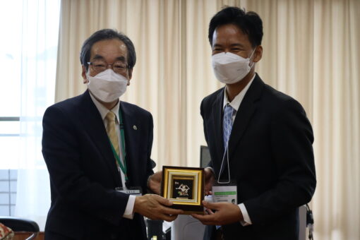 プリンスオブソンクラ大学のご一行様から、ニワット・ケアウプラダブ学長のご署名入りの協定書が手渡されました。本学側の署名に際して、大塚学長からは、タイでは初となる大学間交流協定を締結できることについて、関係者の方々への謝辞と教育・研究両面での交流促進への期待が述べられました。