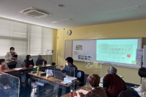 次に、休憩を挟んで「シャッフル文字クイズ」という脳の活性化に有効とされるクイズを参加者全員で行いました。