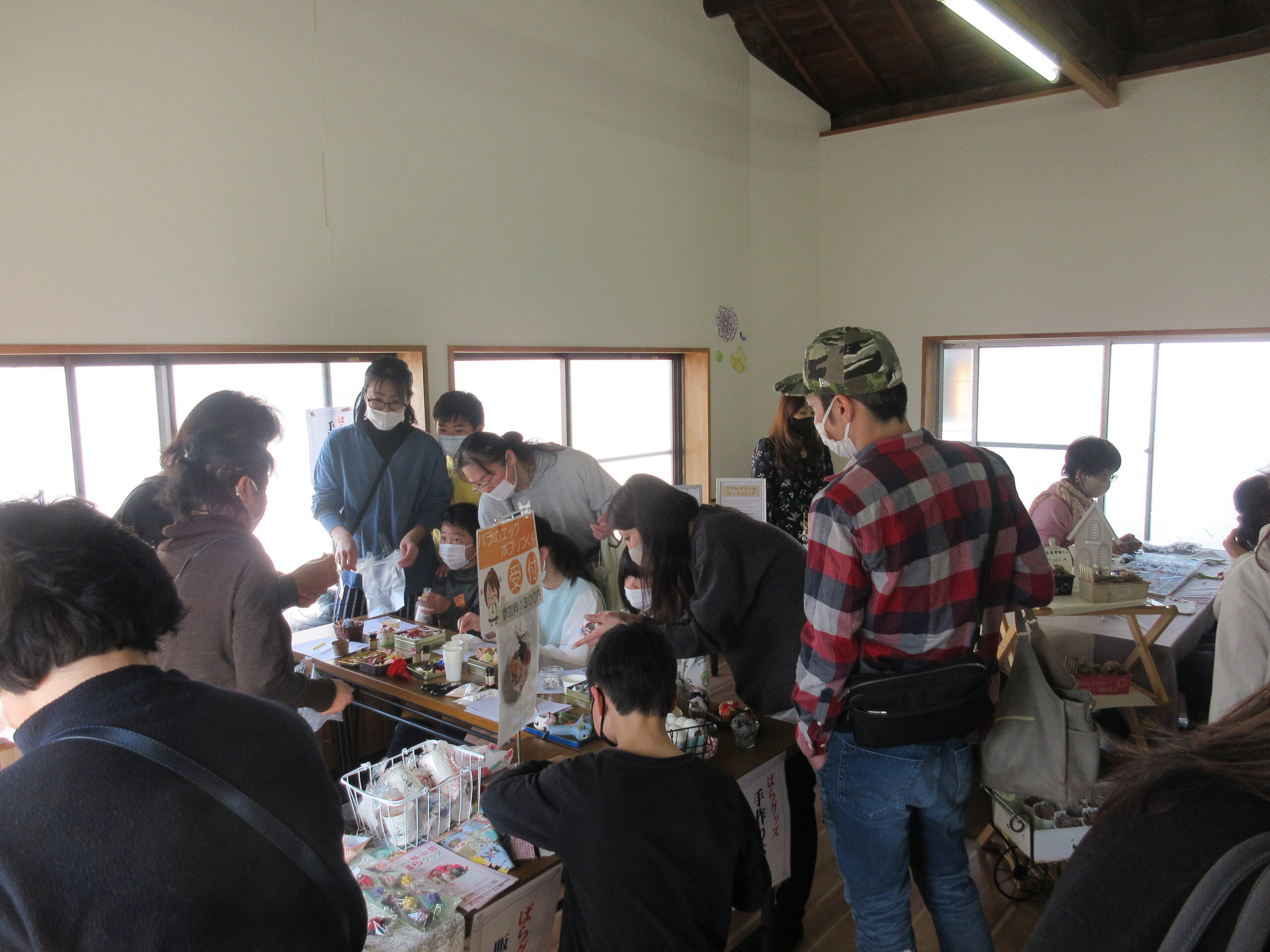 2階の手づくり市をのぞいてみると、こちらもほぼ満員のお客さん。大人だけでなく、結構子どもさんにも人気のワークショップでした。子どもの目は真剣で、キラキラしていました。モノ作りが好きなお子さんが増えるといいですね。コロナで委縮していた子ども達も、だんだんと元の姿に戻っているんだろうなと、感じました。店主の皆さんも、子ども達がきてくれてよかったと言っておられましたよ。