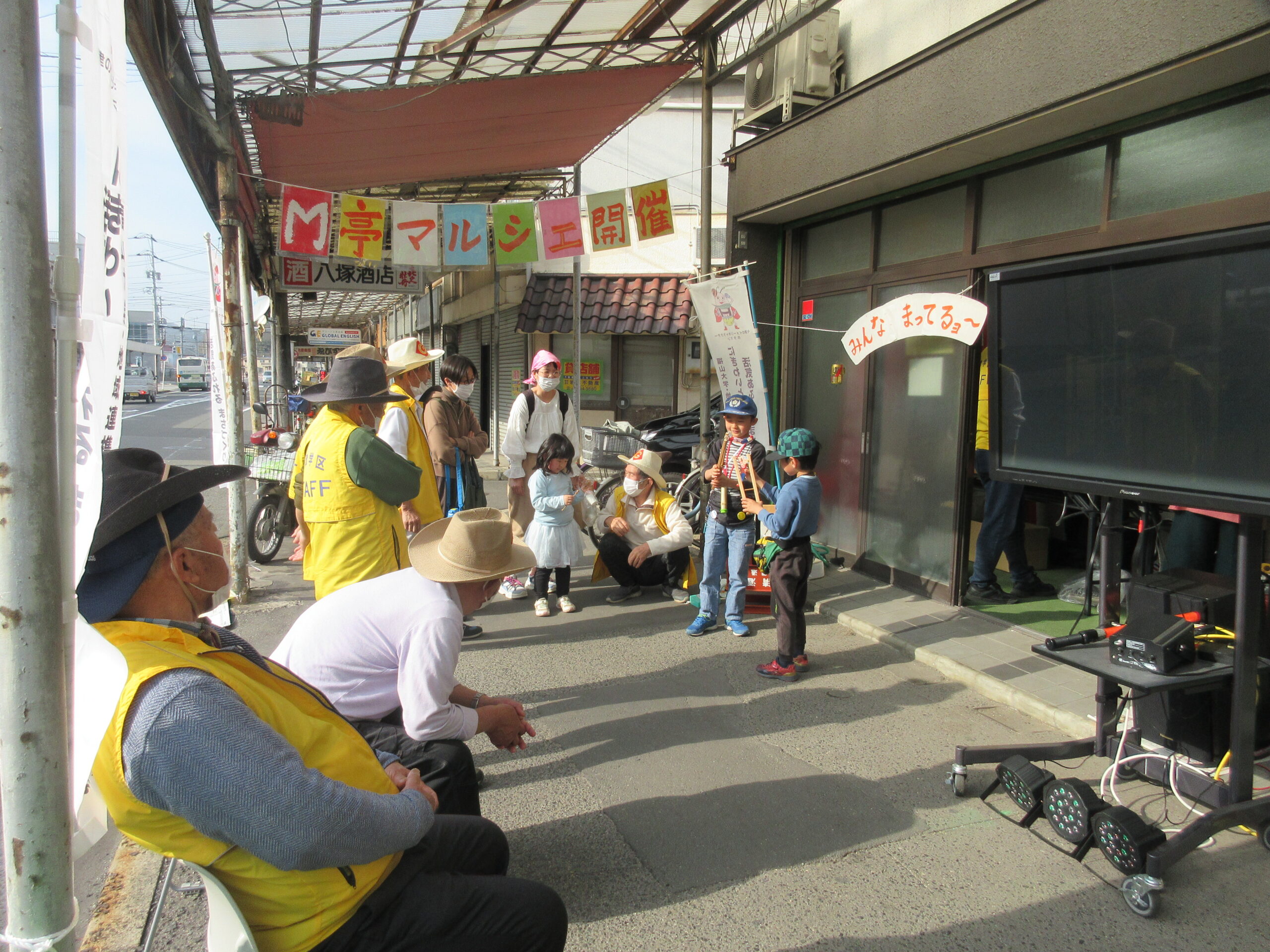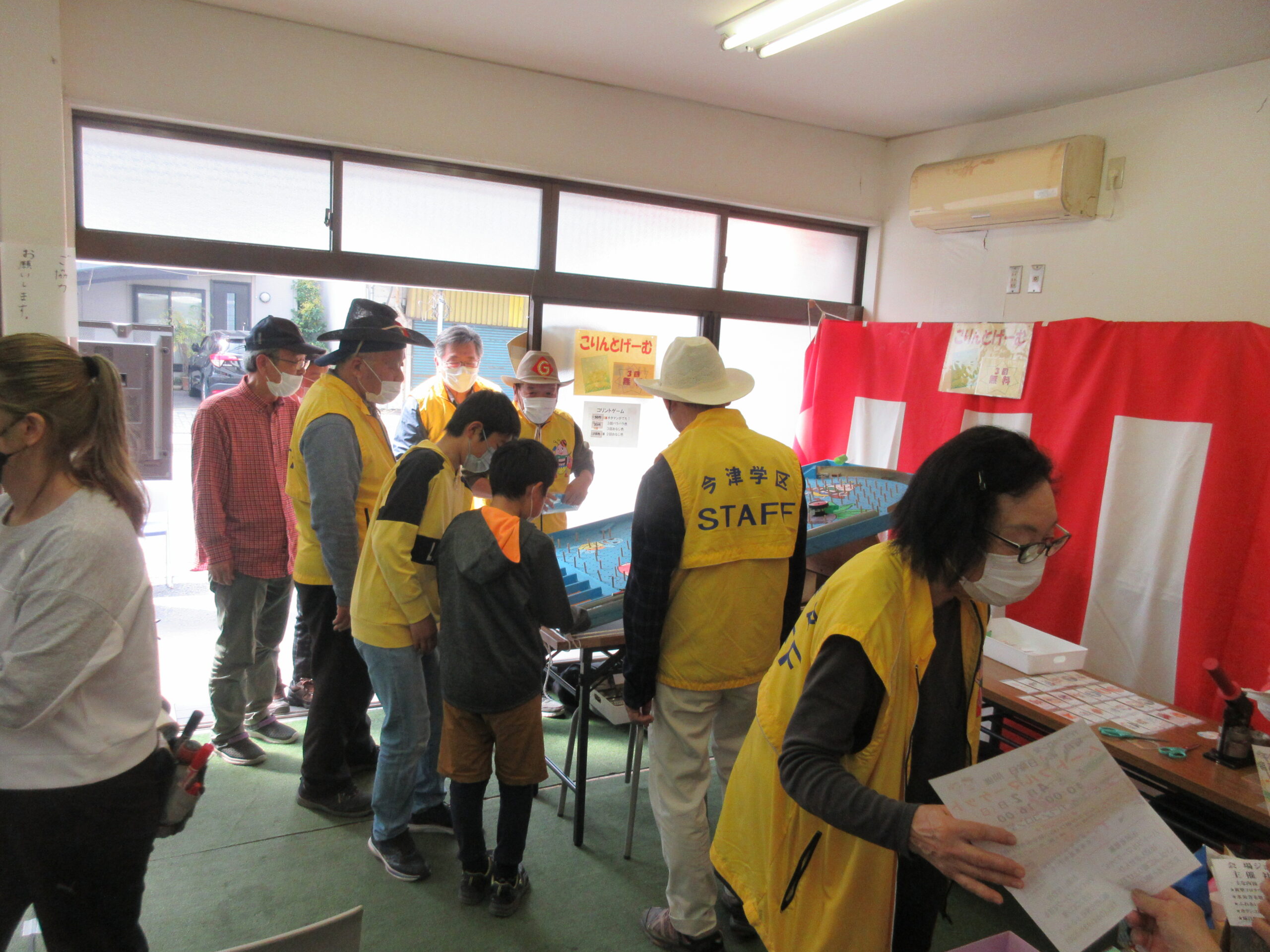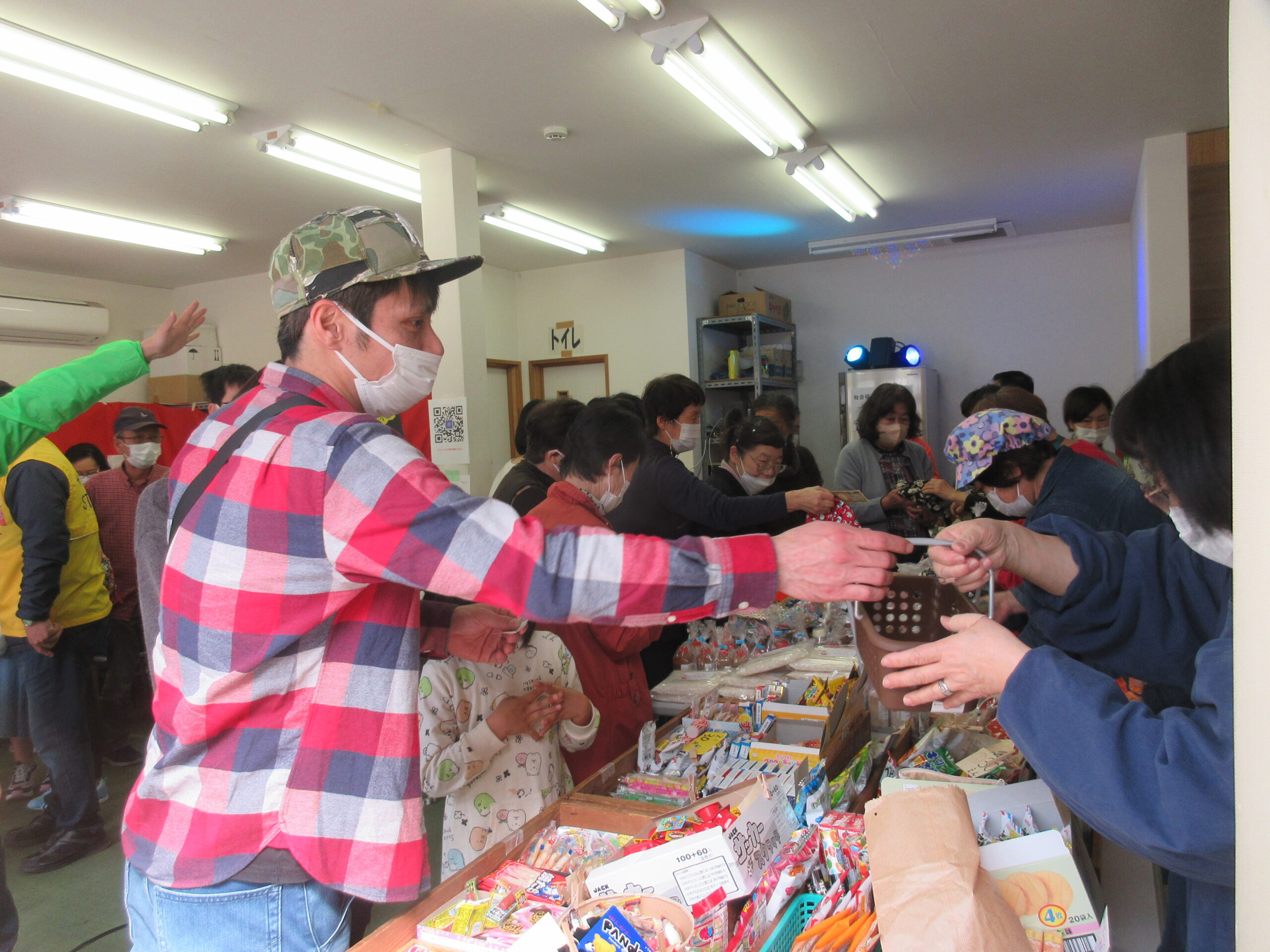 17:00までの予定でしたが、予想に反して、16:00を過ぎてもお客さんが絶えません。ピーク時ほどではないですが、親子連れがぽつぽつとご来店です。結構忙しい4時間でした。店の外では、子どもとお年寄りが仲よく遊んでいます。これぞ「まちづくり!!」・・今津の爺ちゃんの会「G2(GG じいじい)」さんには、お世話になりっぱなしです。