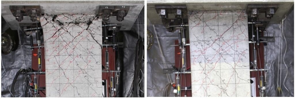 壊れ方の比較(左:工夫なし、右:工夫あり)