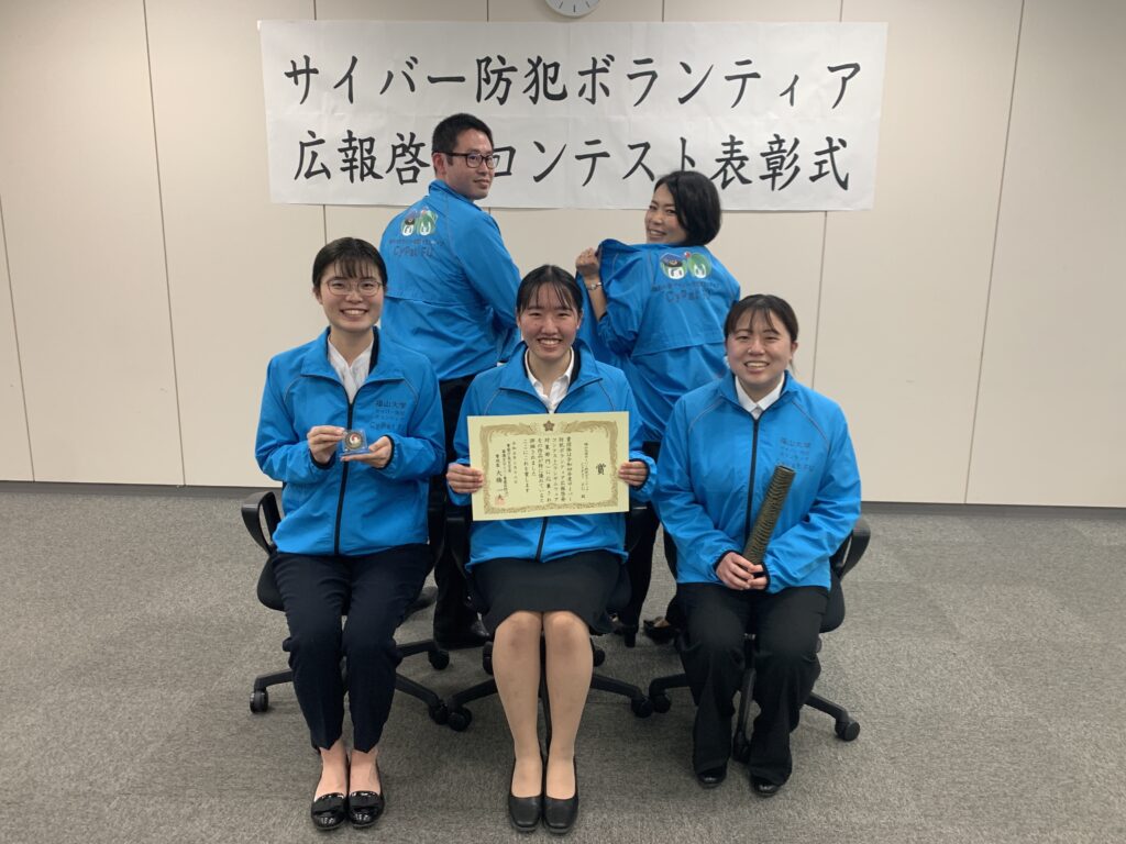 昨年度末に開催されていた警察庁サイバー警察局主催の広報啓発コンテスト。福山大学サイバー防犯ボランティアCyPat FU(サイパットエフユー)は、見事審議官賞(優秀作品)を受賞しました!さらに今月、福山大学の理事長賞も受賞し、メンバー一同今年度の活動に胸を膨らませています。