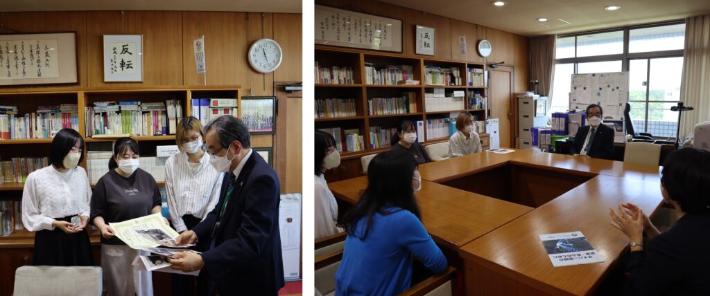 続いて、5月16日(火)には学長室訪問を行い、一連の活動とその結果について、学長にじっくり報告しました。ここまで様々な苦労もありましたが、温かい学長の言葉の数々に、一同苦労が吹き飛び、これからも着実に頑張っていこうと決意を新たにしました。