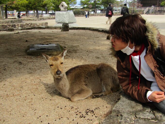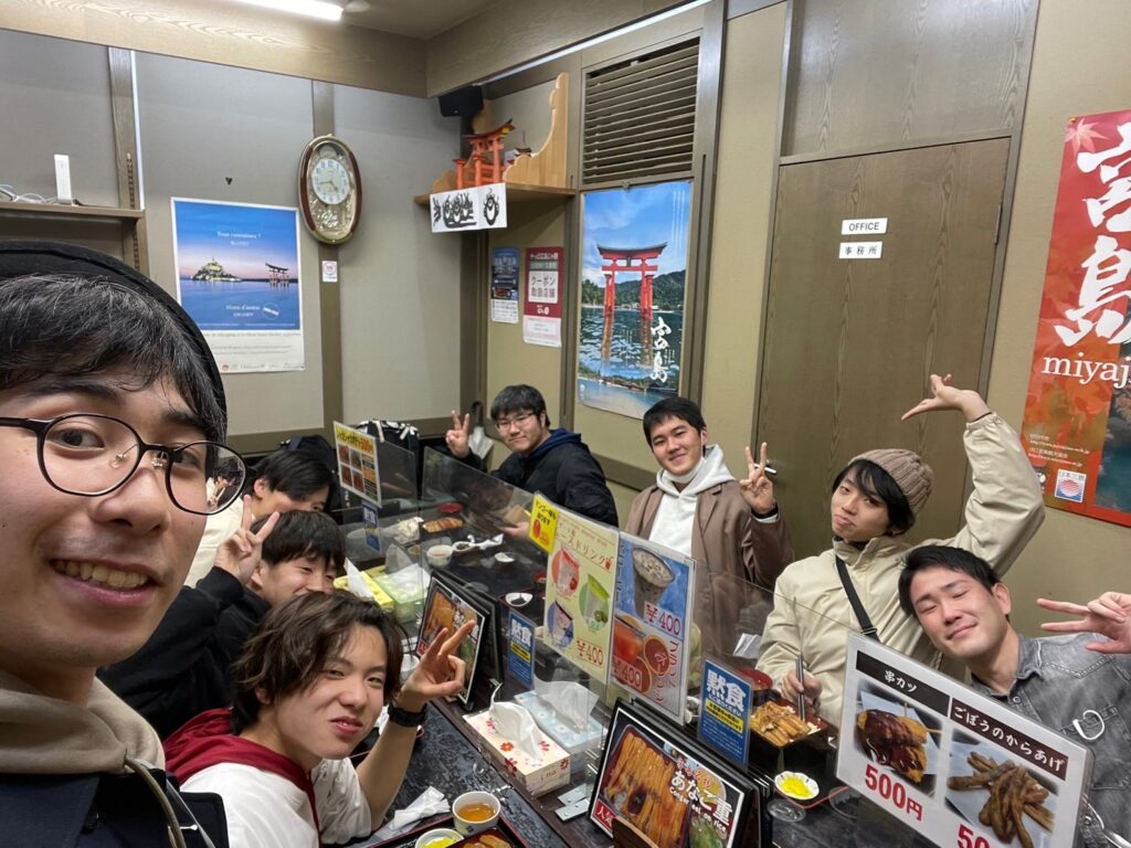 宮島水族館から港までの帰り道は、ゆ~っくりと宮島の町並みを散策し、焼きガキやもみじ饅頭などの “広島の味” を堪能しました。