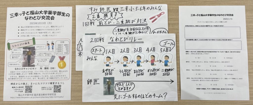 交流会のプログラム計画、役割分担、事前に配る案内作成、交流会を円滑に進めるための説明のビラ作成、成果を量るためのアンケート作成、そして縄跳びの練習!学生もワクワク、ドキドキです。
