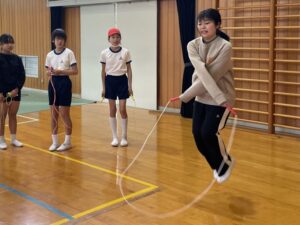 「縄跳びを好きになってほしい」、上達すること以上に「縄跳びを通して楽しい時間を過ごしてほしい」と思いました。私の縄跳びの技披露やリレー形式のゲーム、対決企画もあり、大いに盛り上がりました。小学生の皆さんにとって特別な時間となり、そして日々の取り組みのきっかけになれば嬉しいです。会場の体育館は、皆さんのやる気と熱気で満ち、笑顔と歓声、拍手であふれていました。皆さんの挑戦する姿や「上手になりたい」「二重跳びが跳べた」「縄跳びが好きになった」という声は、私自身の励みとなりました。これからも一本の縄がつないだ人の輪を大切にしていきたいです。私はいつでも出張します。