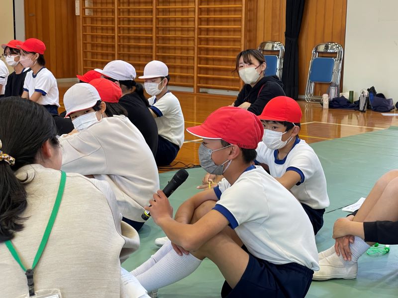交流会の最後には、小学生から大学生への質問コーナーを設けました。
