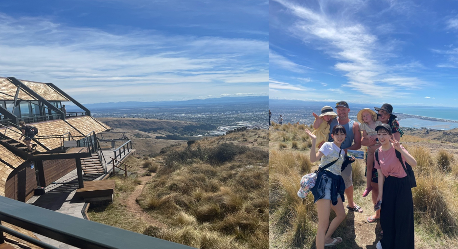 For lunch, we had a hamburger at the mall and chocolate cake and carrot cake for dessert. It was very delicious. After lunch, we went to the gondola which is famous in Christchurch. The gondola climbs steeply, so soon you can see the city of Christchurch and the Canterbury Plains below. It was such a spectacular view.