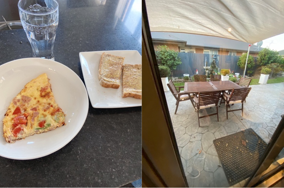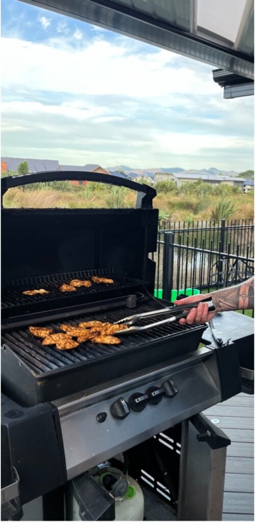 子供たちと遊んだ後、夕食の準備ができました。父のベンが外でチキンを焼いて調理してくれました。今日の夕食はクスクスというデュラム小麦粉を粗く挽いたお米のような料理で、チキン、サラダ、コーンと一緒にカレーで味付けされたものです。日本ではあまり食べられない料理で、とてもおいしかったです。また、ホストファミリーといろんな会話を楽しみながら食事ができたのも良かったです。