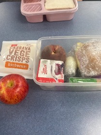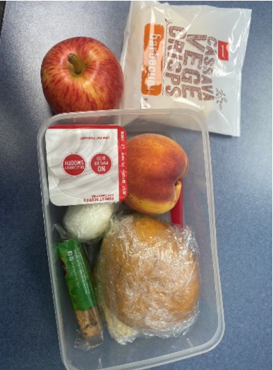 My host family made me a lunch box. It contained apples and peaches. I was surprised.