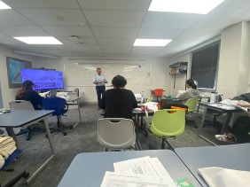 その後、リンカーンの学部生の約200人と一緒にAlan先生の経済学授業に参加しました。地元の学生が多いので、本当の学生の雰囲気が伝わってきました。みんな自分のノートパソコンを持っていて、教授の話を書き込んでいました。私たちはペンと紙を使いました。違うんですね。教授はPPTとビデオを使っていたので、日本と似ています。授業では、言葉がとても難しかったです。ですので、少ししか理解できませんでした。希少性、機会費用、グローバル化など、いくつかの単語を聞き取ることができました。希少性とは、欲求を満たすために利用できる資源が限られていることだと先生が教えてくれました。私たちはすべての内容が理解できるようになりたいので、英語ができるように頑張ります。
