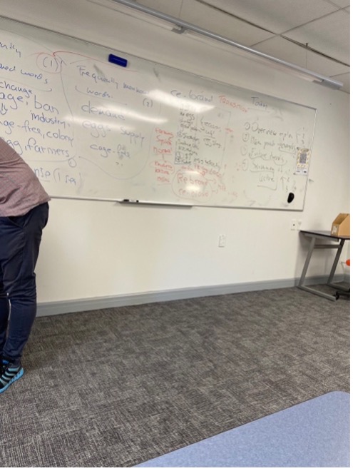 ジョージのクラスで「世界の卵不足」について学びました。私たちはこのトピックについて、Reading, Listening, Speakingという英語のスキルを勉強しながら学んでいます。今日はListeningでしたが、ジョージはとても早く話すので、とても難しかったです。でも、Bisset先生によると、これが私たちにとって良いトレーニングになります。