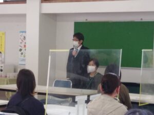 寮父母さんからの挨拶、スタッフの紹介に続いて寮友会寮長からの挨拶もありました。