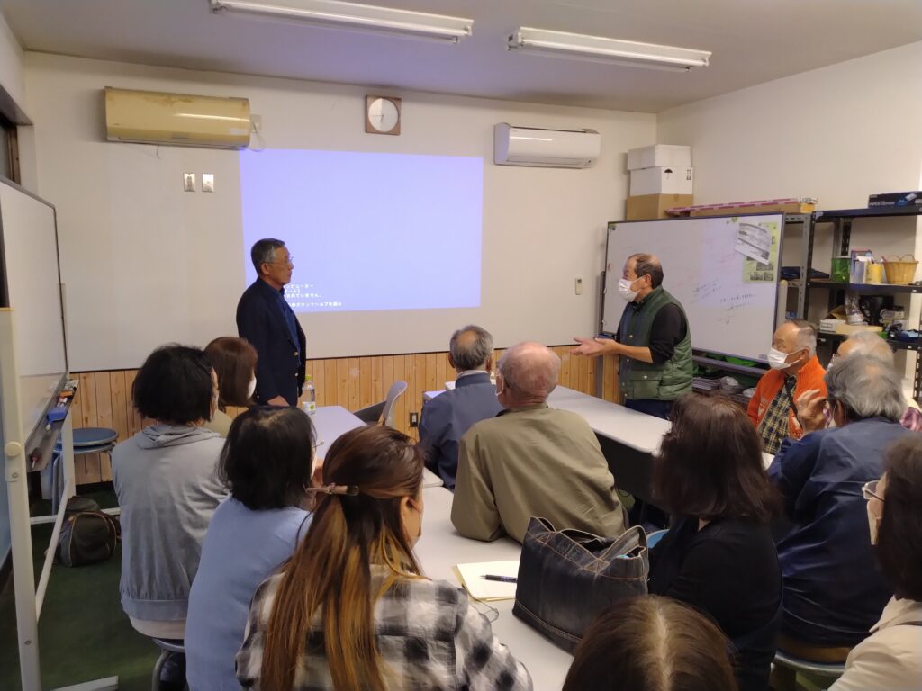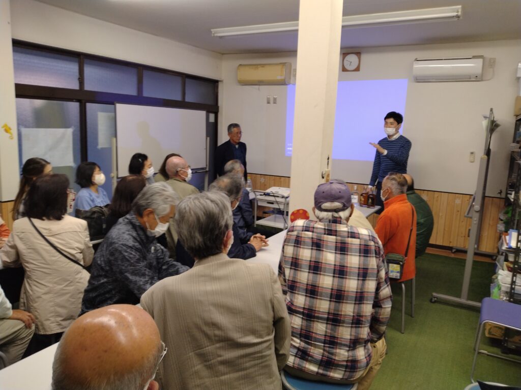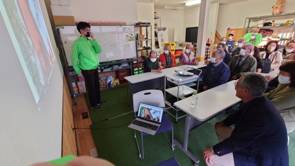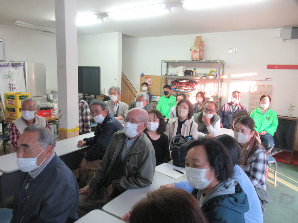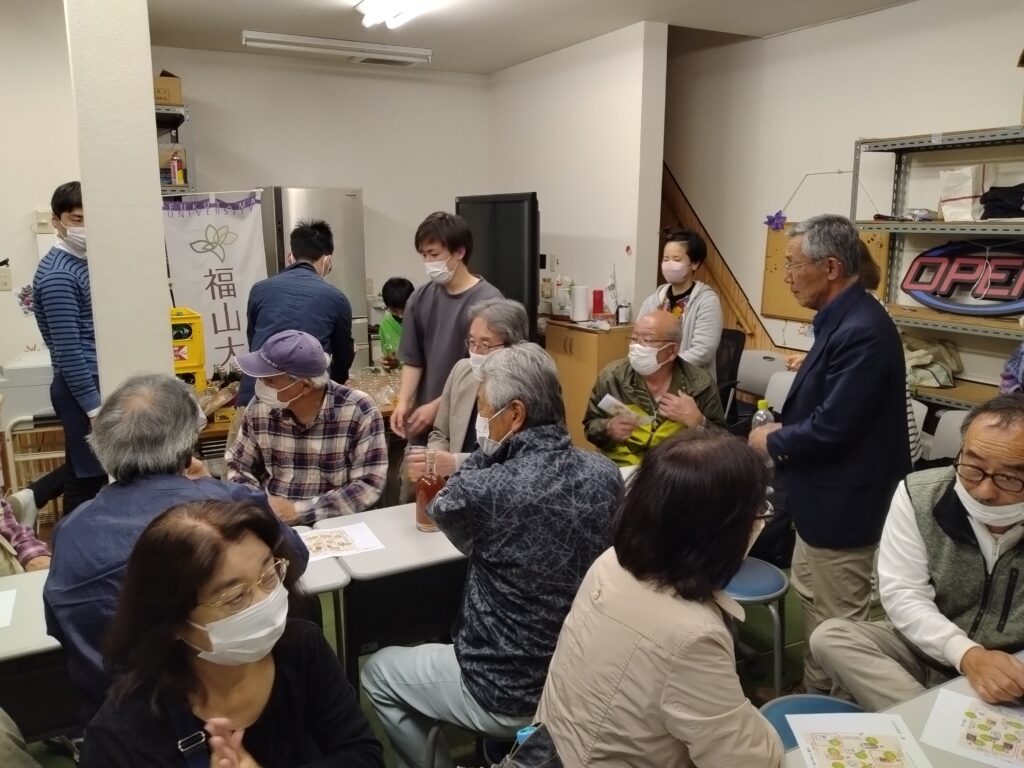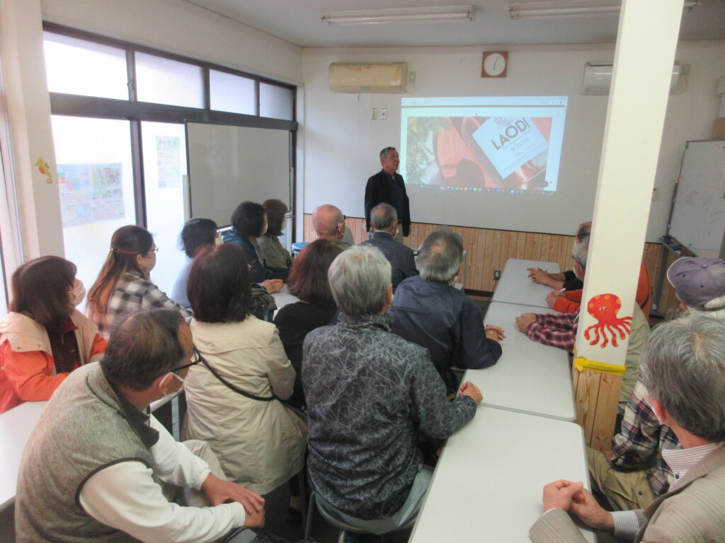 井上氏は今津町出身ということもあって、小学校の同級生の方たちもご来場でした。最後にその方たちと記念撮影。いずれにしても、今回「М亭教養講座」として「ラオスでラム酒づくり」を開催し、一番喜んで下さったのは地元の人たちだなとしみじみ思いました。開催してよかったと交流館のスタッフも私たちも実感しました。今回の催しを快く引き受けてくださった井上さんに感謝です。