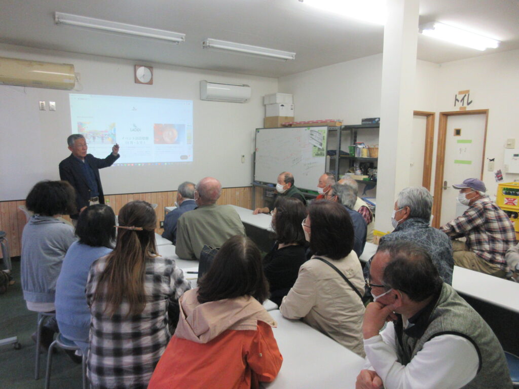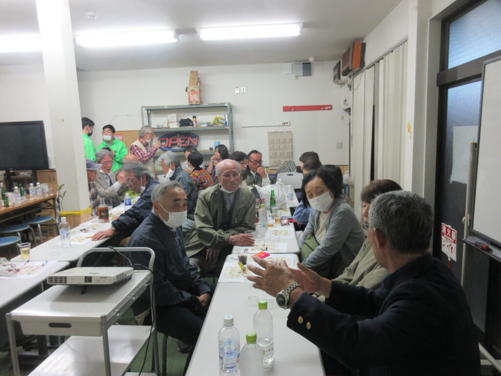 4月28日(金)、ラオスでラム酒を作っているLAODIの井上育三さんに来ていただいて、松永駅北口からほど近いプロジェクトの拠点M亭で「☆ラオスでラム酒づくり」と題した教養講座を開催しました。内容は、まず井上さんから「ラオスでラム酒を作る思い」を語っていただき、後半は地元の福田酒店さんによる試飲を兼ねた「ラム酒の楽しみ方」講座という、二本立てでした。事前に今津交流館のご協力で、開催の案内を遺芳丘小学校学区内に配っていただき、あっという間に20名の定員が埋まりました。