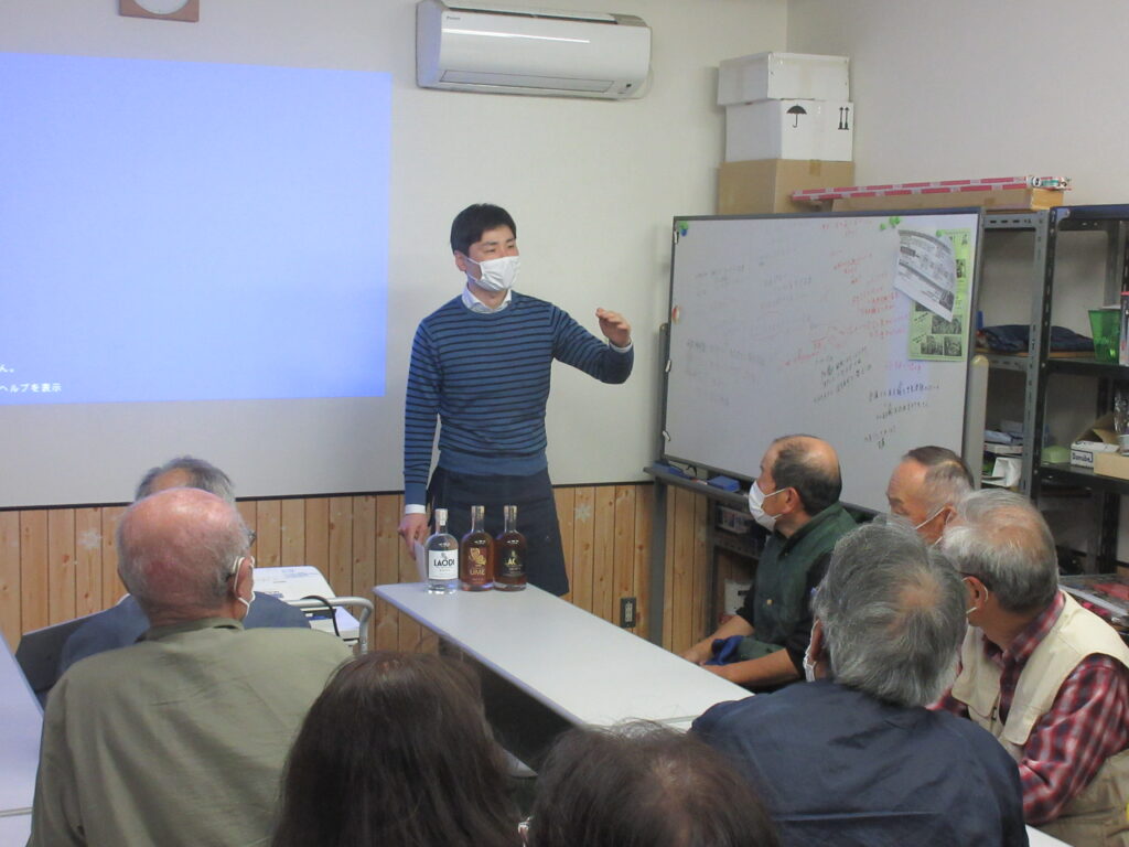 ラム酒とはどんな酒で、どのようにして作るかという話題から、ラオスの自然の豊かさ、ラオス人のやさしさ、ラオスにみる日本の原風景そしてサトウキビの原産地に位置するラオス、International Wine and Spirit Competition で金賞を取った矢先にコロナでロックダウンとなり大変な思いをしたこと・・などなど、いいこと悪いこと、うれしいこと苦しいこと、楽しいこと悲しいこと、そしてこれからの夢など、ラオスでラム酒を作る思いを、時には熱く、時には淡々と、ラオス現地でもしゃべっている備後弁で語ってくださいました。井上氏の話に聞く側はどんどん引き込まれていきました。質問にも丁寧に答えてくださるので、あっという間に時間が過ぎていきます。思わず、そろそろ次のラム酒の楽しみ方にと声をかけなかったら、終わりは何時になるのやら・・と気をもむほどでした。