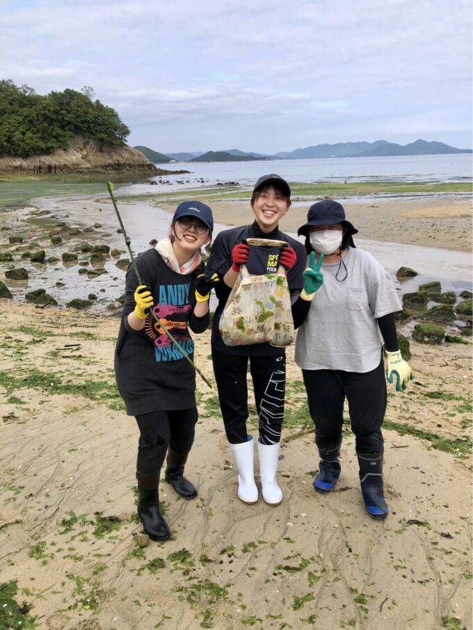 今年度の活動では瀬戸内海の抱える海洋環境問題についての啓発展示を計画しており、調査中には海岸清掃活動も併せて実施しました。