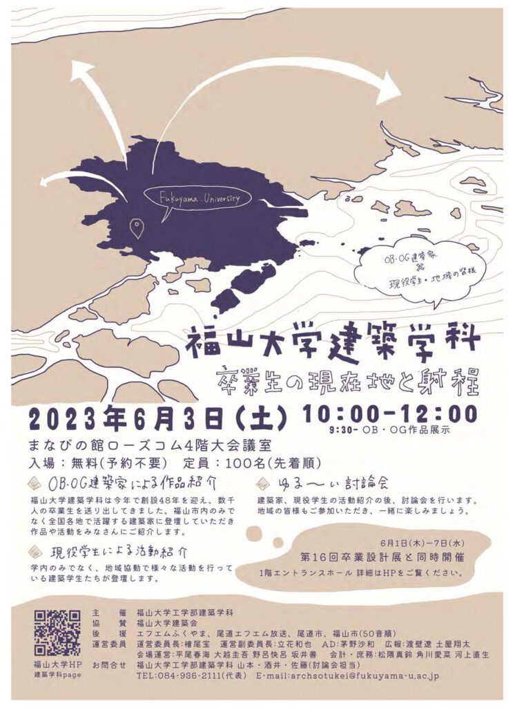 建築学科では、現在「第16回福山大学建築学科卒業設計展2023」を開催しております。先日のブログでご案内したとおり、その同時開催イベントとして、OBOG建築家討論会を開催しました!このことについて、酒井助教からレポートが届きましたのでお伝えします。(投稿は学長室ブログメンバーの山本)