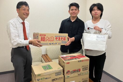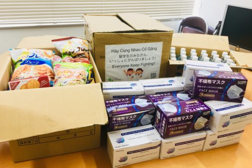 その後、約2回、同会の会員松脇さん等の有志により、海外から入学したばかりの留学生たちに食料品が届けられました。コロナ禍の中で来日して間もない留学生にとって温かいお支えだったと感謝しております。