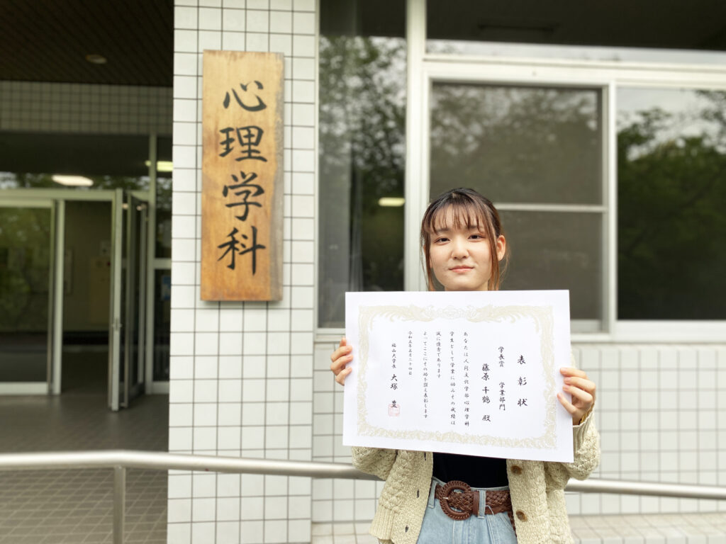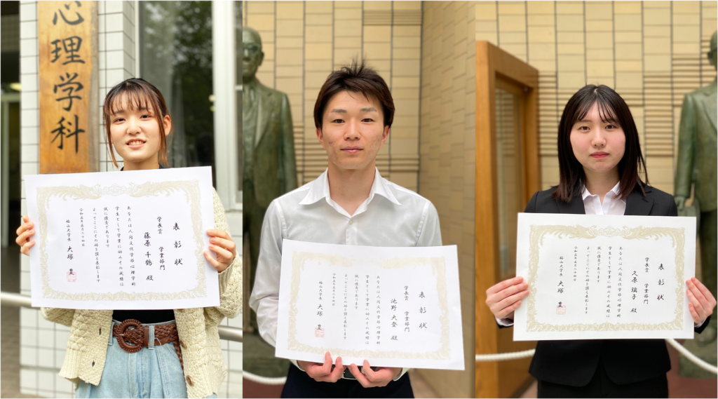 春季の学生表彰授与式において、心理学科の以下の3名が表彰されました。