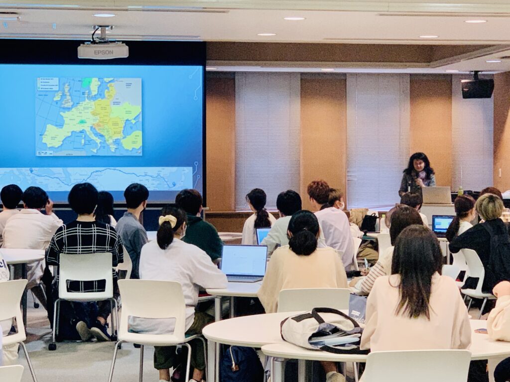 滞在最初の講義は、新入生を対象とした教養ゼミで行われました。「大学で学ぶ」ということがどういうことか、大学がどのように学生の成長を促すかについて、まさに新入生の学びを深く考えるテーマでした。ソフィア大学の具体的な取り組みは、学生のみならず教員にもとても刺激的で、受講した皆が多くの学びを得るものでした。