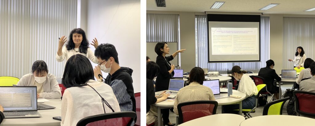 ゼミらしく自己紹介や自分の関心のある研究の話題から始まり、「心理職として働く上で何が最も重要か」を考えるワークや「ブルガリアの夜を1人で歩けるか」について多面的に考えるワークなどが実施されました。ニコラエヴァ教授と学生たちとのインタラクションも多く、終始賑やかで楽しい時間でした。