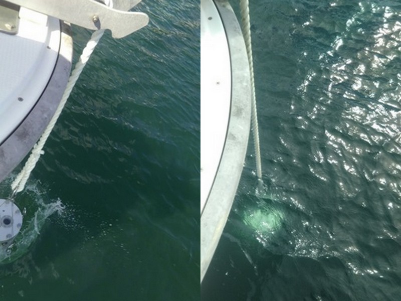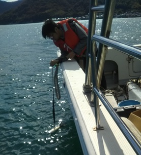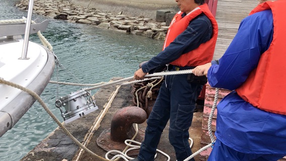 実験開始直後、船長さんから不気味な言葉が。「ここは水深20m以上あるけど太いロープの長さは20mだっけ??」