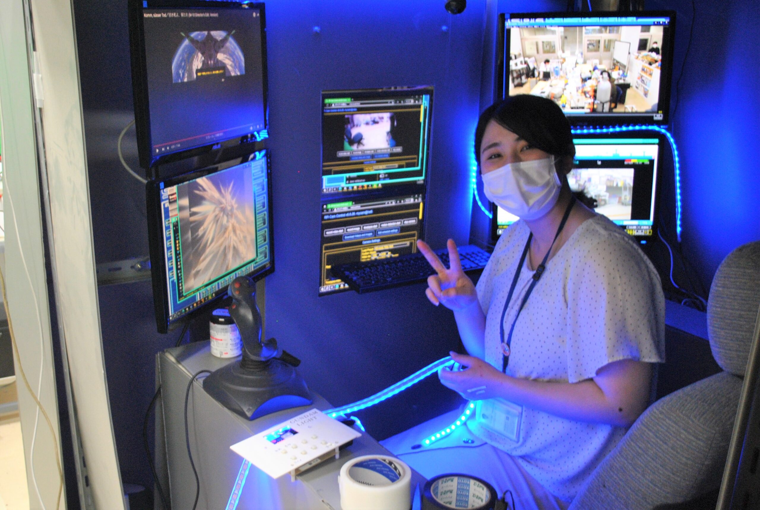 大学広報部の担当者にもCM制作に向けて乗り込み体験をしてもらいました。
