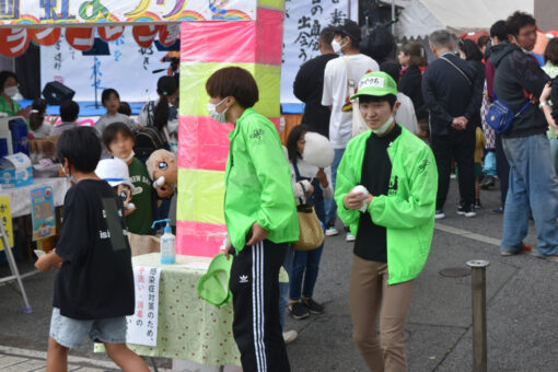 そしてイベント当日は、屋台や子ども向けゲームブースの運営や会場周辺の交通誘導、コロナ対策啓発劇への出演、水災害VR体験ブースの運営などに分かれて、プロジェクトMも全面協力でお手伝いさせていただきました。