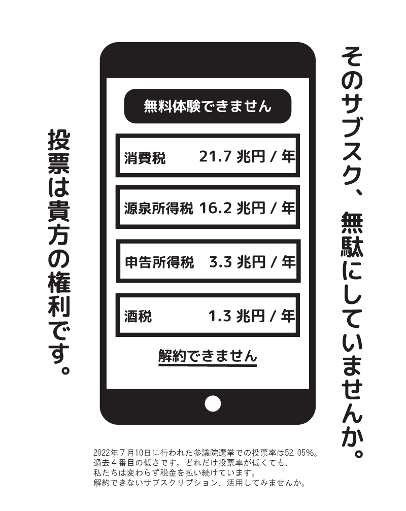 この作品は「選挙」、特に投票率の低さに着目して制作されています。大場さんは「見る人にテーマが簡潔に伝わるよう、シンプルさにこだわって制作しました。普段から思いついたことはスマホにメモするようにしており、今回はここから案を出しました。私自身、他の応募者に比べ、制作ソフトの操作が特別優れているというわけではないので、日常でひらめいたことをできるだけ丁寧に表現しました。また、新聞に掲載されることを想定した広告だったので、適切なフォントや大きさを選択することに苦労しました。」と語ってくれました。