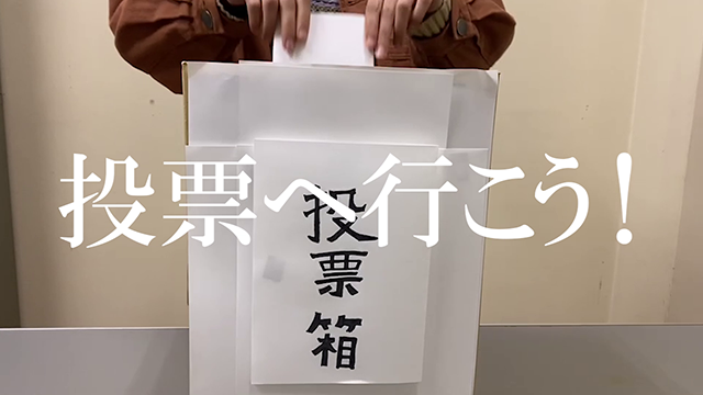 テレビCM部門奨励賞の受賞作品は、こちらも「選挙」をテーマとした「若者の声」です。この作品は、2年生と3年生が履修する「メディア実践」という授業で、6名( 4年生:中村 帆乃香さん、紙屋 駿さん、久保 艶香さん、黒須 隼斗さん、 小林 悠吾さん、3年生:牧平 夏旺さん)のグループにより制作されました。