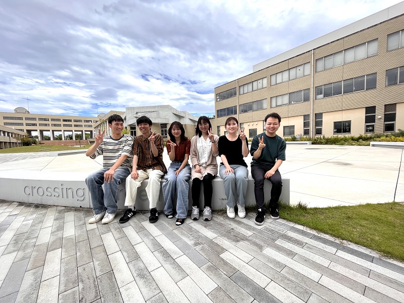 その後、内海生物資源研究所と工学部棟の撮影後に、15時00分から、6年生6名の協力により、未来創造館の外観と1号館中庭の様子を撮影しました。