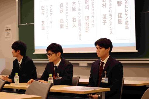 また、第二部及び第三部では、本学を卒業され、医療現場でご活躍されている薬剤師の先生方をお招きし、「ウィズコロナの中で活かす薬剤師のコミュニケーション力とは」についてトークセッションや学生との交流・相談会を通じて、先輩方からアドバイスを頂くことができました。