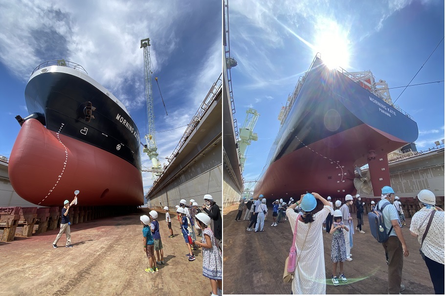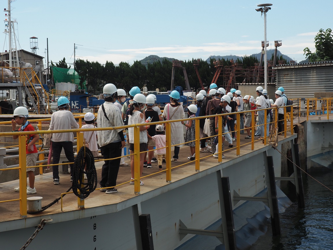 向島ドック株式会社と日本中小型造船工業会が主催したイベントが7月30日に実施されました。このイベントに機械システム工学科の中村准教授と機械システム工学科の学生7名が参加しました。この様子を工学部機械システム工学科の学長室ブログメンバーの小林が報告します。