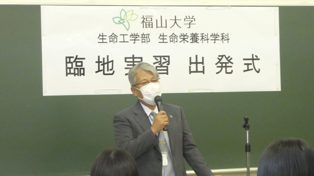 生命栄養科学科(来年度から健康栄養科学科に名称変更予定)では、3年次に臨地・校外実習(学外実習)で保健所、保健センター、病院、高齢者福祉施設、小学校に赴き、実地で管理栄養士業務を先輩の管理栄養士から指導を受けます。学外実習に向けて、学科で開催した出発式について、学長室ブログ委員の石井がご報告します。