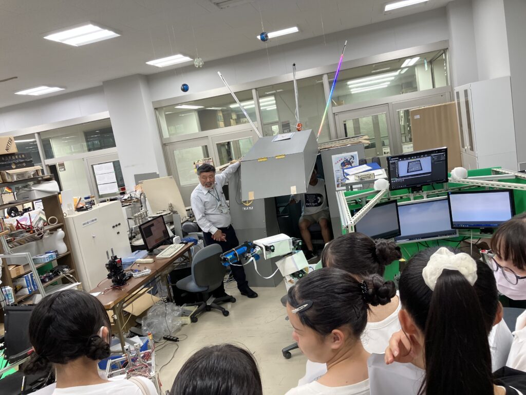 皆さんが説明に熱心に耳を傾け、キラキラした目で楽しみながら見学してくださっている様子が非常に印象的でした。大学生たちが作成した作品や活き活きとものづくりに打ち込んでいる姿を見て、塾生の皆さんも「ものづくり」への意欲が掻き立てられたのではないでしょうか。