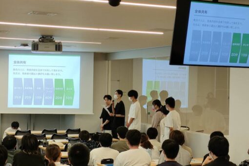 このプレゼンワークを通じて、学生たちは実習で学んだことを自らの言葉で表現し、体験を経験に変えていきます。個人ワークのときには少し硬い表情で黙々とシートの記入に取り組んでいた学生たちも、グループワークになると表情が明るくなり、活発にプレゼンとフィードバックを行っていたのが印象的でした。まさに開会の挨拶で香川教授が述べられた「集団脳」が形成されていく様子を見ているようでした。