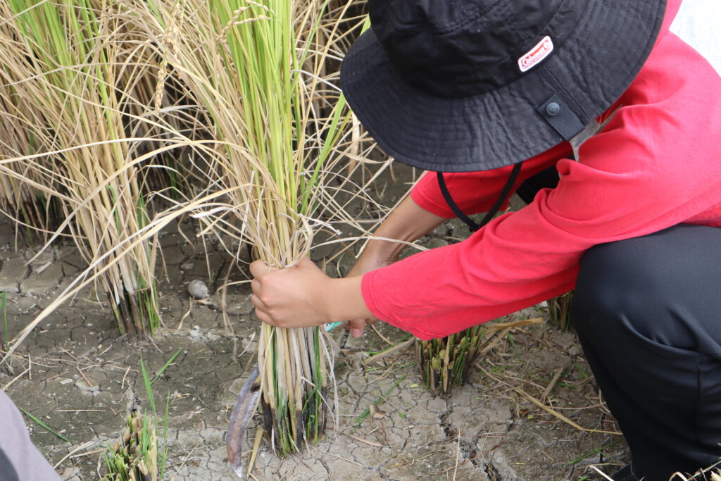 <教えてもらったことを思い出しながら稲を刈る様子>