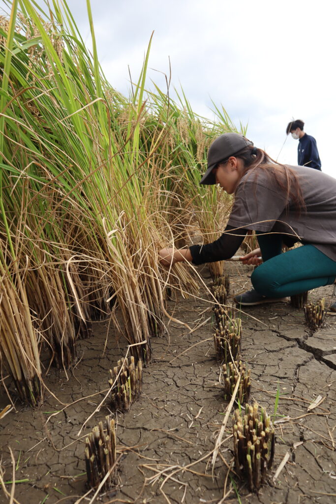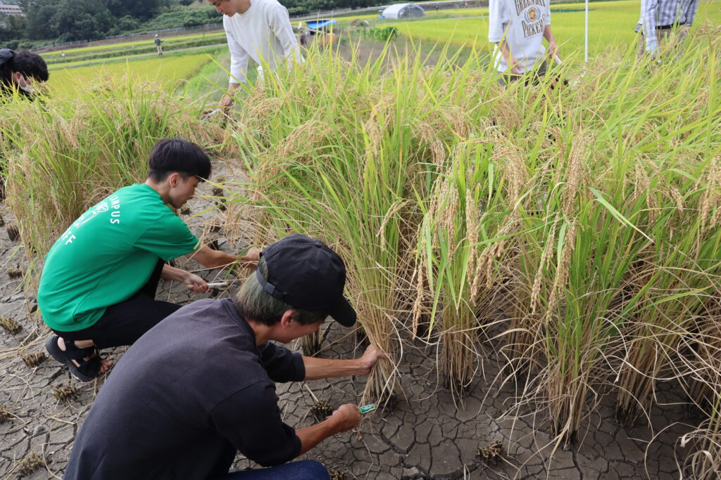 5月の田植えに続き、稲刈りも多くの学生は慣れない作業だったと思います。学生たちからは、稲刈りが終わった際には、「疲れた~」という声とともに笑顔がこぼれていました。楽しく、遊ぶように学べたのではないでしょうか。また、学生・教職員ともに、5月の田植え、9月の稲刈りと作物の成長を感じることができました。