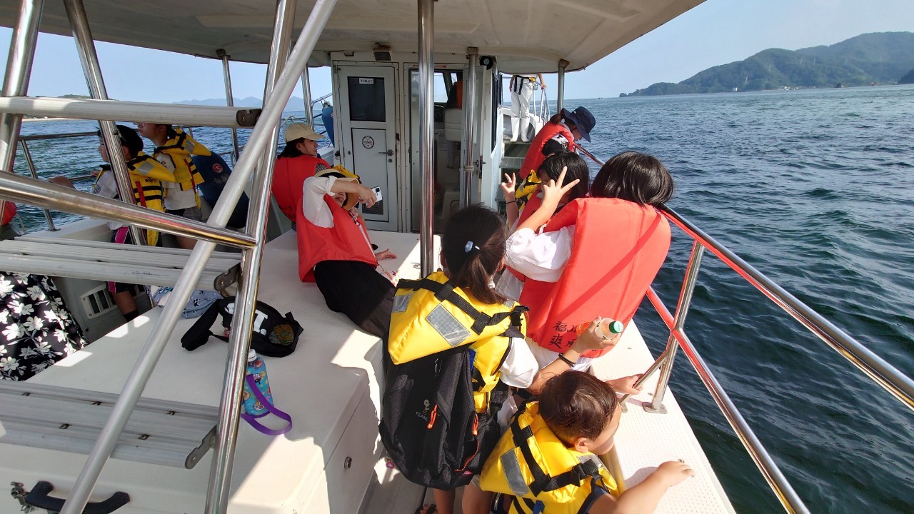 今年も無事に因島キャンパス見学バスツアーを終えることができました。晴天に恵まれすぎて猛暑の一日でしたが、子ども達はもちろん保護者の方たちにも楽しんでいただけたイベントだと思っています。因島キャンパスのスタッフの方々、バス、飲み物、お土産をご提供下さった法人に感謝いたします。ありがとうございました。