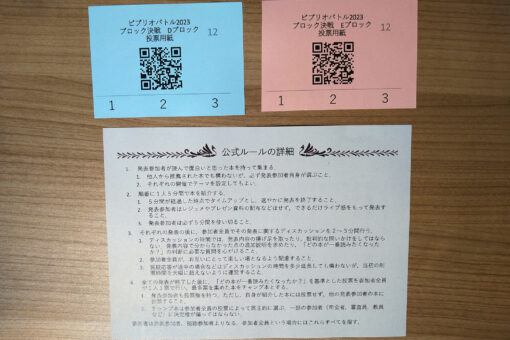 Dブロック、Eブロックすべての発表が終わった後は一番読みたくなった本に投票をします。ブロック決戦ではQRコードを読み込んでFORMで投票をするやり方でした。