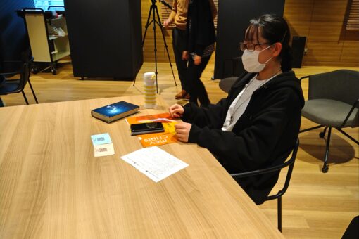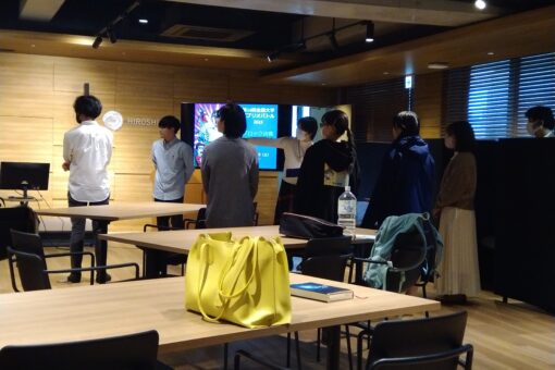 本人は「緊張します!」と言っていましたが、肩の力が良い感じに抜けているようにも見えました。観戦者として参加されたメディア・映像学科の内垣戸貴之准教授も角さんにアドバイスやエールを贈られていました!今回の様子が学科のブログに取り上げられていますので、こちらも併せてご覧ください。