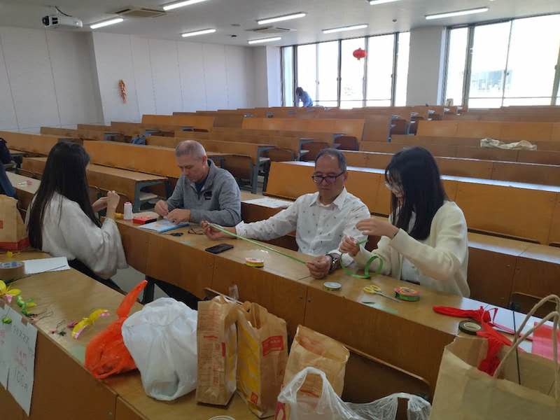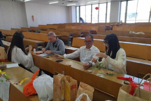 学長から一言:日頃から劉国彬准教授の懇切な指導の下、語学力の向上を中心として活動に取り組んでいる中国語文化倶楽部が、大学祭で福山大学孔子学院の有志の方々の協力も得て実施した今回の催しは、なかなかの盛況。私も180人の一人として来場しましたが、美しい中国風の手芸品が自分でも作れる体験は貴重で思い出として残るでしょう。