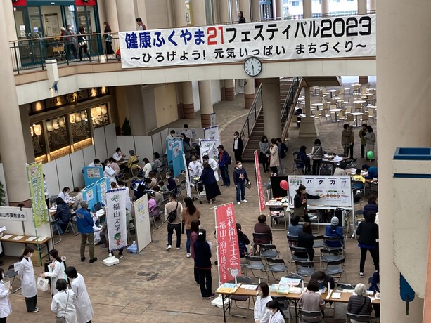 学長から一言:「健康ふくやま21フェスティバル2023」には本学から3つの学科が参加し、それぞれの専門知識や特徴を活かした展示や活動を展開しました。健康維持に対する市民の意識が高まる中で、薬学部薬学科のブースには種々の検査を受けるため、来場者の長い列ができたようです。市民の健康増進への貢献、お疲れ様でした。