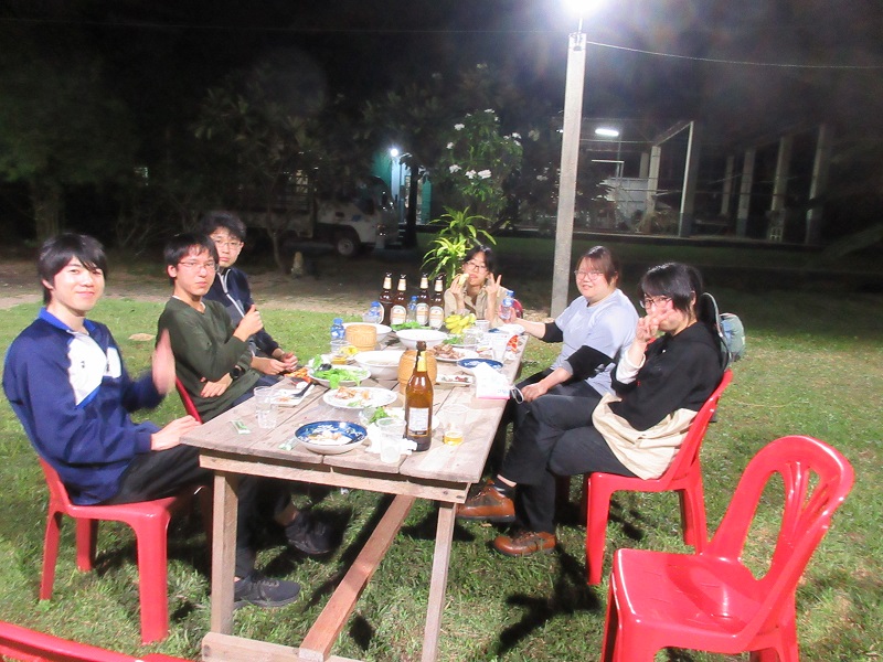 この日の最後には、LAODIの敷地内でパーティを開いていただきました。まだ試作段階の果実につけたラム酒も試飲させていただき、学生たちにも好評でした。長く短い一日が終わりました。大変な作業の多い一日でしたが、ラオス海外研修はまだ中盤。次のブログでは、ラオスの大学との交流を紹介します。See you soon.
